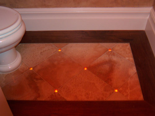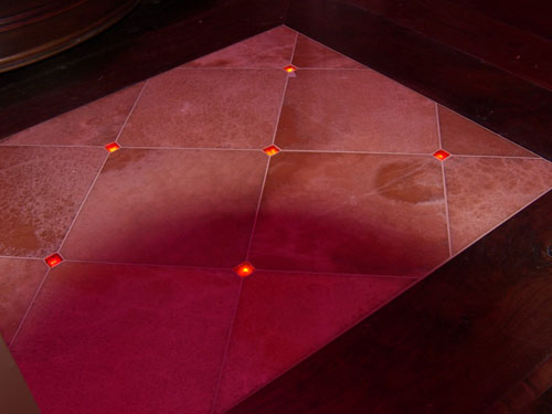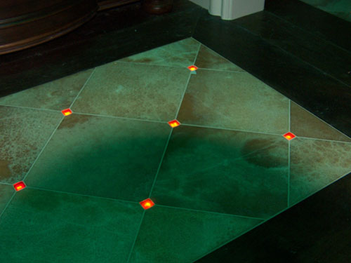 An idea for a dramatic lighting project which takes advantage of fiber optics’ capability to work safely in wet areas. Glass tiles are increasingly popular as a way of providing a feature or accent in a ceramic tile décor, and now you can take advantage of their translucency to come up with a way of permanently integrating lights into a tiled wall.